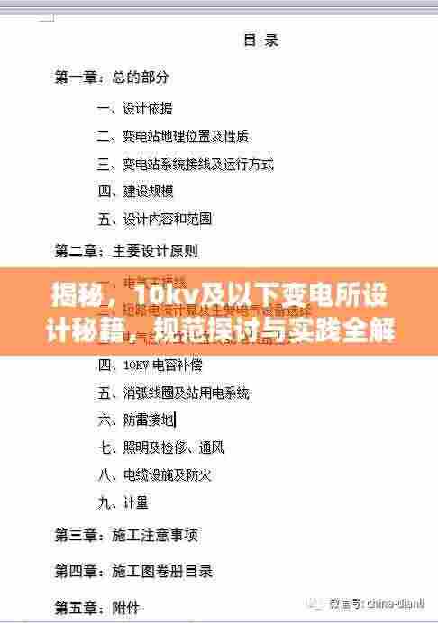随着电力行业的快速发展,变电所的设计规范变得越来越重要,作为电力系统中的重要组成部分,变电所的设计应确保其安全、可靠、高效运行。《10kv及以下变电所设计规范》是我国针对这一领域制定的关键标准,本文将对这一规范进行深入探讨和实践应用。