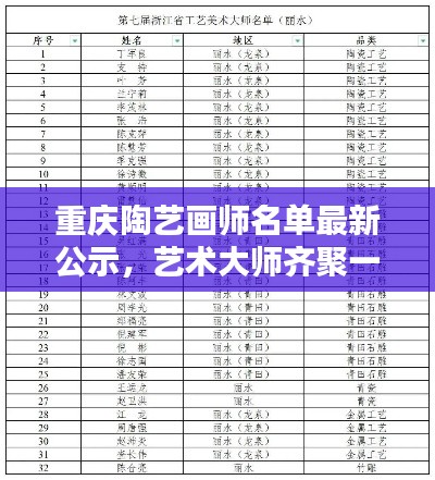 随着陶艺文化的繁荣和发展,重庆地区的陶艺画师队伍日益壮大,为了展示重庆陶艺画师的才华和成果,最新的重庆陶艺画师名单已经公示,本文将为您介绍这些优秀的陶艺画师,展示他们的艺术风采。