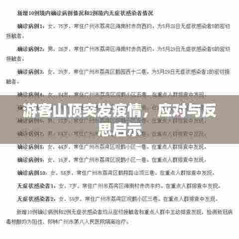 一起游客在山顶突发疫情的新闻引起了广泛关注,随着旅游业的繁荣,人们越来越热衷于走出城市,享受大自然的美景,突如其来的疫情给这次旅游带来了一场严峻的考验,本文将围绕这一事件展开,探讨应对措施以及从中引发的反思。