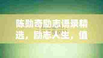 陈勋奇,一个深受人们喜爱的励志名人,他的语录充满了智慧和力量,以下是陈勋奇励志语录的摘抄大全,希望能够激励和鼓舞每一个追求梦想的人。
