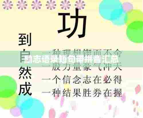 这些带拼音的励志语录短句,都是对人生充满正能量和启发的话语,面对挑战和困难,我们要勇敢前行,坚持不懈,勇往直前,也要珍惜当下,努力追求梦想,希望这些语录能够带给大家鼓励与力量,让我们一起努力,共创美好未来!