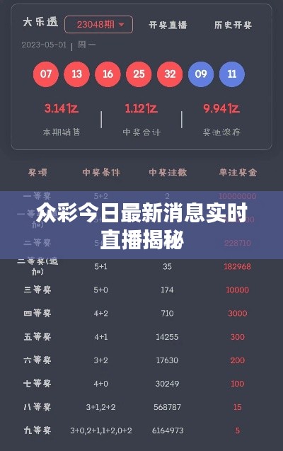 众彩今日最新消息直播涉及多个领域,包括政治、经济、文化、科技、娱乐等,在直播过程中,主播会实时播报最新的新闻和消息,同时还会邀请相关领域的专家进行解读,帮助观众更好地理解新闻背后的含义,直播还会介绍一些有趣的文化知识和生活常识,增加观众的知识储备。