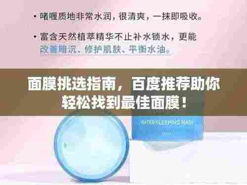 选择一款好的面膜对于护肤至关重要,通过百度搜索,我们可以找到许多备受好评的面膜产品,本文推荐的几款面膜仅供参考,建议根据自己的肤质和需求来选择,使用面膜时要注意方法和频率,避免过度使用或不当使用导致皮肤问题,希望本文能帮助你找到适合自己的面膜,让你的肌肤更加健康、美丽。