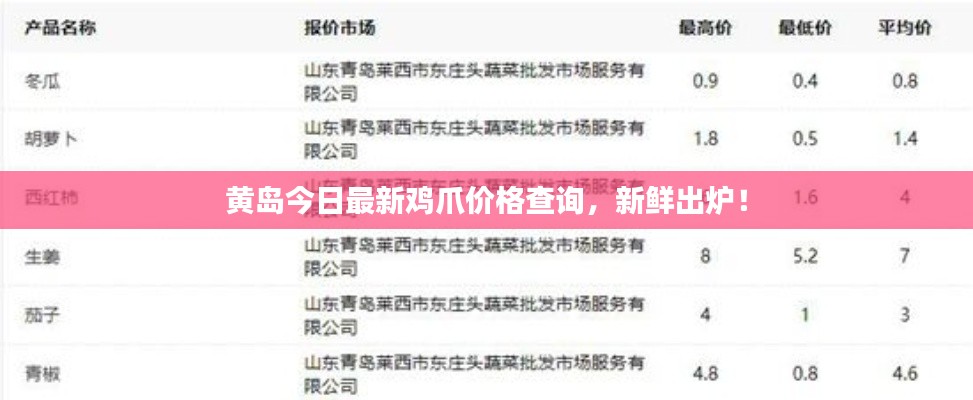 随着人们消费水平的提高,对于食品的需求也日益多样化,鸡爪作为一道美味的小吃,在市场上备受欢迎,本文将为您介绍黄岛鸡爪价格的最新情况,带您了解今日黄岛鸡爪的价格走势。