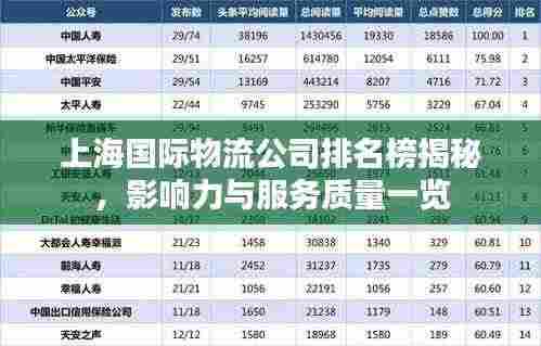 随着全球化的加速和国际贸易的蓬勃发展,物流行业在中国各大城市中扮演着日益重要的角色,作为中国的经济中心,上海的物流行业发展尤为突出,本文将深入探讨上海国际物流公司的排名榜及其影响力。