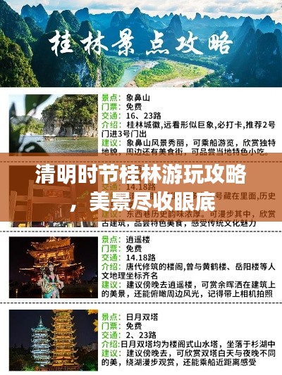 清明节是中国传统的节日之一,也是春季旅游的黄金时期,桂林,以其秀美的山水景色和丰富的旅游资源,吸引了无数游客前来观光游览,本文将为您提供一份详尽的清明桂林旅游攻略,助您更好地规划行程,享受美好的旅行体验。