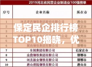 保定,这座历史悠久的城市,近年来在经济领域取得了显著的发展,尤其是民营企业,如雨后春笋般蓬勃发展,为保定经济注入了新的活力,本文将为您介绍保定优秀民企排名前十名,这些企业在各自的领域内表现出色,成为了保定的骄傲。