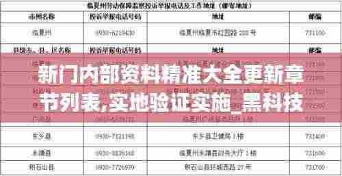 在当今信息爆炸的时代,获取准确且高效的内部资料显得尤为重要。尤其是在企业运营、市场调研、和竞争分析等领域,拥有一份精准全面的内部资料库,可以为决策者提供强有力的数据支持。"新门内部资料精准大全更新章节列表",便是一个极具价值的资源,能够帮助企业在复杂的商业环境中纵横捭阖。