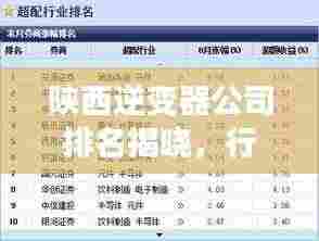 逆变器作为一种重要的电力电子设备,广泛应用于工业、能源、交通等领域,随着技术的不断进步和市场的不断扩大,陕西地区的逆变器公司逐渐崭露头角,本文将探讨陕西逆变器公司的排名及其行业影响力。