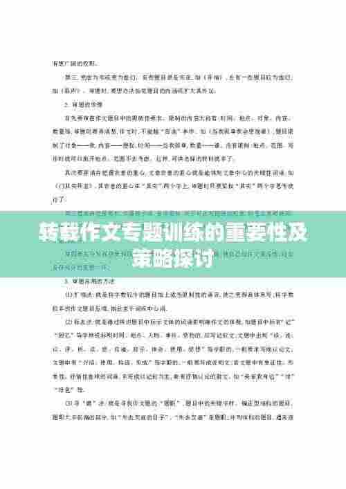 在信息化时代,知识的获取与传递变得日益便捷,而转载作文作为一种重要的信息传递形式,其在专题训练中的作用逐渐受到教育界的关注,转载作文不仅能够为学生提供丰富的写作素材,还能帮助学生了解不同类型的写作风格,从而提高自身的写作水平,本文将探讨转载作文专题训练的重要性及其策略。