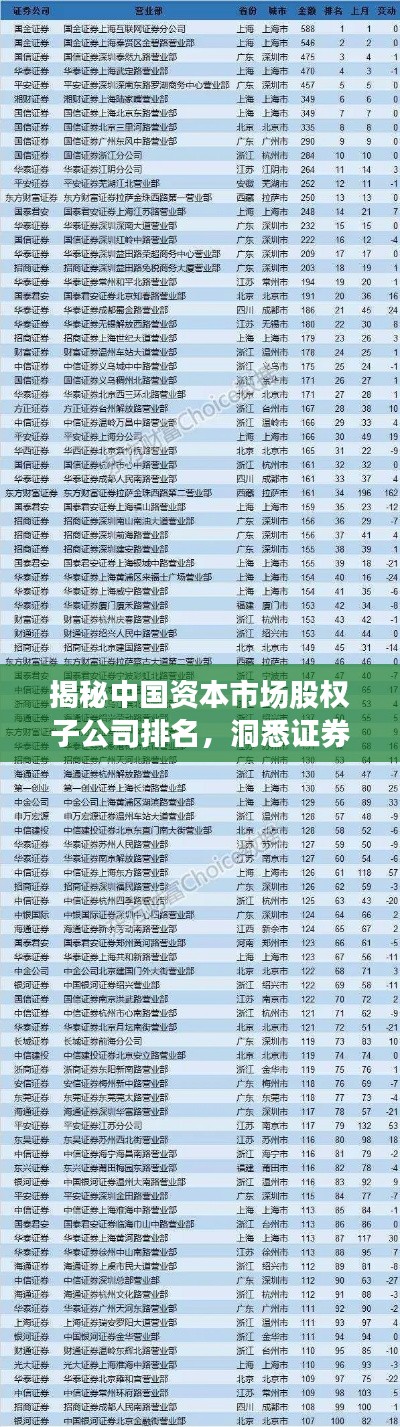 揭秘中国资本市场股权子公司排名,洞悉证券公司力量分布榜单!