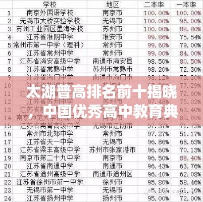 在中国的教育版图中,太湖地区以其卓越的教学质量、丰富的教育资源和深厚的文化底蕴,孕育了许多优秀的高中,本文将为您揭晓太湖普高排名前十名,带您了解这些学校的独特魅力和教育特色。
