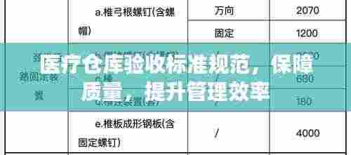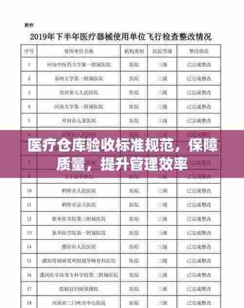 随着医疗行业的迅速发展,医疗物资的管理显得尤为重要,医疗仓库作为存储和管理医疗物资的重要场所,其验收工作的规范性和严谨性直接关系到医疗物资的质量和安全,制定一套完善的医疗仓库验收标准规范至关重要,本文旨在探讨医疗仓库验收的标准规范,以确保医疗物资的安全、有效和质量控制。
