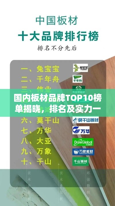 板材作为现代建筑、家具制造等领域不可或缺的材料,其品质直接关系到产品的质量和使用寿命,随着国内板材行业的不断发展,涌现出了许多优秀的板材品牌,本文将对国内板材品牌前十名进行排名介绍,以飨广大消费者。