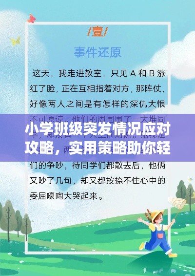 小学生正处于身心快速发展的阶段,活泼好动,好奇心强,班级突发情况的出现难以避免,如何有效处理这些突发情况,确保学生的安全和教育的正常进行,成为每位小学教师必须掌握的重要技能,本文将从小学班级突发情况的重要性、处理原则、具体策略等方面进行探讨。