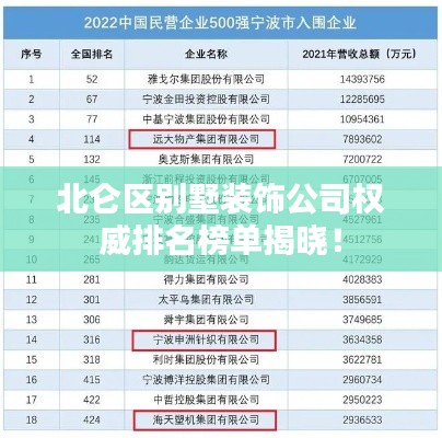 随着房地产市场的蓬勃发展,别墅装修已成为人们关注的焦点,在北仑区,众多别墅装饰公司如雨后春笋般涌现,各具特色,为业主提供多样化的服务,本文将对北仑区别墅装饰公司进行排名,以便业主更好地了解并选择适合自己的装饰公司。