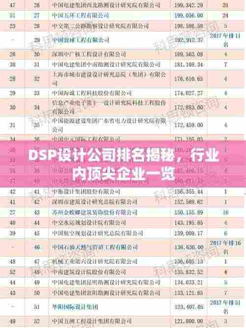 随着数字信号处理技术的飞速发展,DSP(数字信号处理)设计公司在各行各业的应用越来越广泛,这些公司以其卓越的技术、产品和服务,赢得了市场的认可和客户的信赖,本文将为您揭示DSP设计公司排名,带您了解行业内领先的佼佼者。