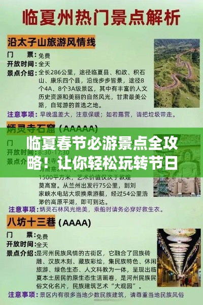 春节将至,临夏这个美丽的城市等待着您的到来,作为甘肃省的一个魅力之地,临夏在春节期间有着独特的氛围和风景,本文将为您呈现临夏春节旅游攻略,助您更好地了解和享受这座城市的魅力。