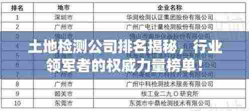 随着科技的发展和人们对土地资源的日益关注,土地检测行业逐渐崭露头角,本文将围绕“土地检测公司排名”这一主题,介绍行业内的一些领军企业,展示它们在土地检测领域的实力和贡献。