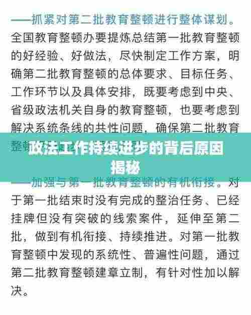 政法工作是维护社会稳定、保障人民权益的重要力量,随着我国社会的不断发展,政法工作也在不断进步,政法工作不断进步的原因是什么呢?本文将从多个方面探讨这一问题。