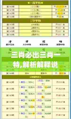 在博彩领域,尤其是彩票行业,"三肖必出三肖一特"这一说法引起了众多彩民的关注和讨论。这个术语通常与数字彩、六合彩等项目紧密相关,通过对某种规律的分析,来寻找出中奖的方式。接下来,我们将对这一概念进行详细解析,帮助大家更好地理解和应用这一理论。