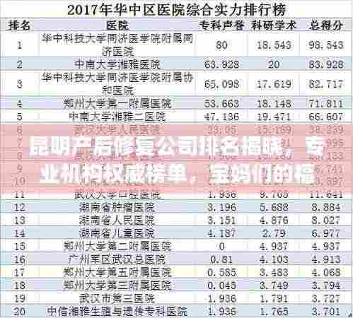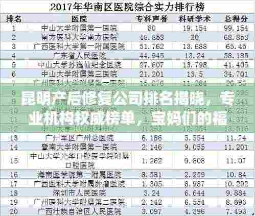 随着社会的不断进步和人们生活水平的提高,产后修复行业逐渐受到越来越多家庭的关注,在昆明这座美丽的城市,许多产后修复公司应运而生,为新生儿家庭提供专业、个性化的服务,本文将为您介绍昆明产后修复公司的排名,以帮助您更好地了解并选择适合的服务机构。