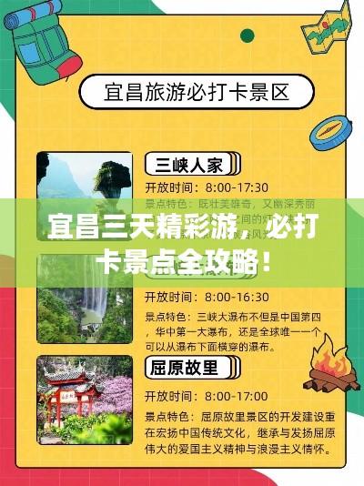 这次三天旅游攻略,让你在宜昌度过一个充实的假期,从三峡大坝到磨基山风景区,从乡村风情到红色记忆,让你领略到宜昌的别样风情,希望这篇攻略能为你提供有用的信息,祝你在宜昌的旅行中收获满满的美好回忆。