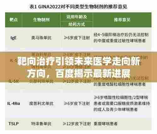 随着科技的飞速发展和医学领域的持续进步,越来越多的治疗方法涌现出来,“靶向治疗”成为了当下最热门、最具前景的治疗手段之一,究竟何为“靶向治疗”?它又如何改变我们的医疗体系和生活呢?让我们一起“百度一下”靶向治疗。