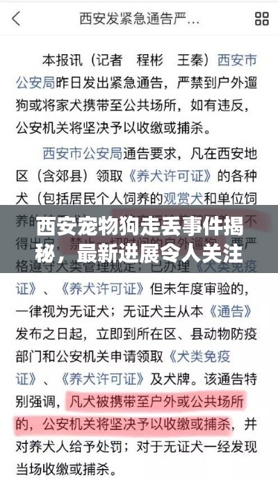 在繁忙的都市生活中,宠物已经成为许多家庭的重要成员,西安作为历史悠久的文化名城,宠物爱好者众多,宠物走失事件时有发生,给宠物家庭带来无尽的担忧和痛苦,此次宠物狗走丢事件引起了社会各界的广泛关注,人们纷纷关注事件的最新进展。