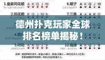 随着德州扑克在全球范围内的普及,各地的玩家都在努力提升自己的游戏技巧,争夺德州扑克世界的最高荣誉,在众多玩家中,有一些名字因为他们的卓越表现而被广大扑克爱好者所熟知,本文将为您介绍世界德州扑克玩家排名,带您了解这些扑克世界的佼佼者。