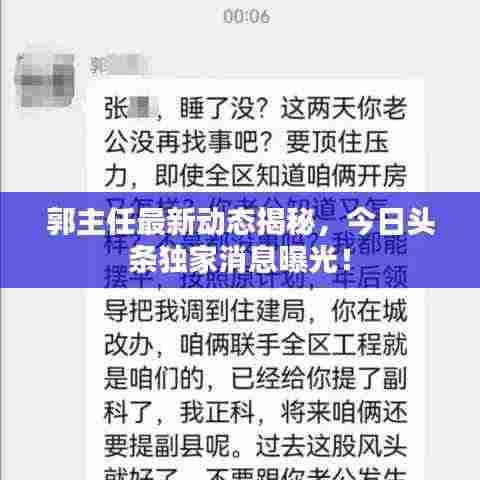 随着互联网的普及和社交媒体的快速发展,人们获取信息的渠道越来越广泛,今日头条作为一款集合各类资讯的APP,已经成为人们获取信息的重要工具之一,关于郭主任的消息成为了公众关注的焦点,其在今日头条上的最新消息备受关注,本文将对郭主任的最新消息进行梳理和分析。