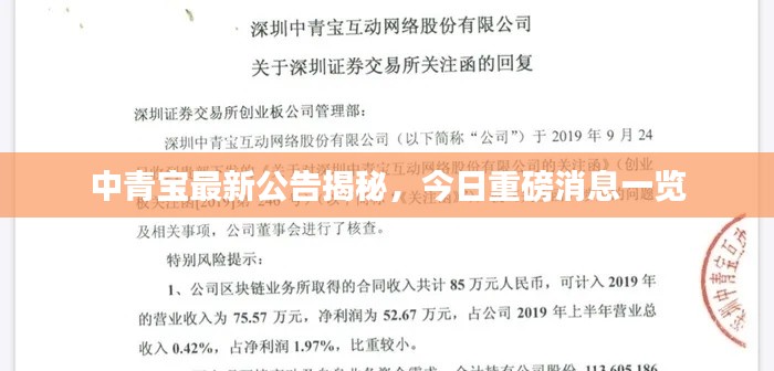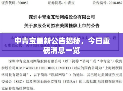 中青宝发布了一份重要公告,引起了业界和广大投资者的关注,作为领先的互联网公司,中青宝在业界拥有举足轻重的地位,本文将围绕这一公告,为您深入解析其中的最新消息。