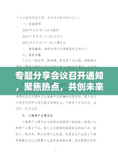 我们诚挚地邀请您参加即将召开的专题分享会议,本次会议旨在汇聚业界精英,共同探讨相关领域的最新动态与未来发展趋势,以下是会议相关的详细信息,请您关注。