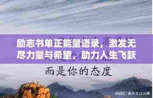 在这个快节奏的时代,我们时常需要一些励志的话语来鼓舞自己,激发内心的力量,而书单中的正能量语录,就像一盏明灯,照亮我们前行的道路,我们将一起走进这些励志书单,感受那些充满正能量的语录,汲取无尽的力量与希望。