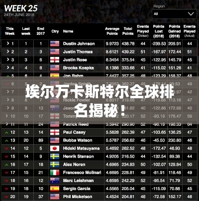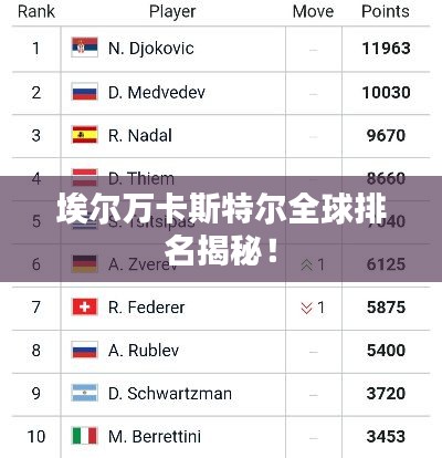 在全球化的今天,埃尔万卡斯特尔的世界排名不仅仅代表了他个人的成就和荣誉,更反映了他所在国家和民族的文化实力和发展水平,他的成功,也激励了更多的人去追求自己的梦想,去创造属于自己的辉煌。