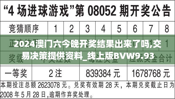 随着2024年的到来,澳门六与相关博彩活动再次吸引了广大玩家的关注。作为一种流行的博彩游戏,澳门六因其简单易懂的规则和较高的中奖概率而深受欢迎。对于热爱这一游戏的朋友们来说,了解每晚的开奖结果无疑是参与游戏的必备信息。本文将为您带来最新的2024澳门六今晚开奖结果,以及如何有效利用这些信息进行交易决策的资料。