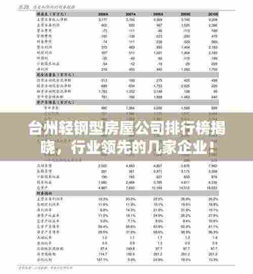 随着建筑行业的不断发展,轻钢型房屋作为一种新型的建筑材料,因其高强度、施工速度快、环保等优点,逐渐受到市场的青睐,在台州地区,众多轻钢型房屋公司纷纷涌现,为消费者提供了多样化的选择,本文将介绍台州地区的轻钢型房屋公司排名,以帮助消费者更好地了解并选择优质的服务商。