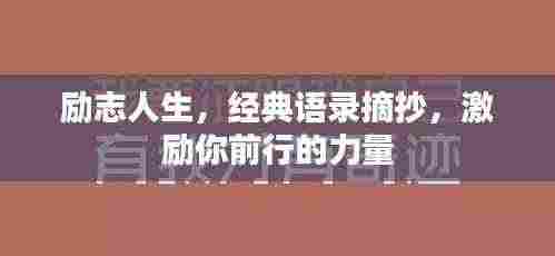人生,是一条充满未知与挑战的道路,每个人在这条路上都会遇到各种各样的磨难和困境,正是这些经历,塑造了我们独特的个性和坚韧的品质,以下是我从众多励志语录中摘抄出的经典语句,希望能激励我们在人生的旅途中勇往直前。