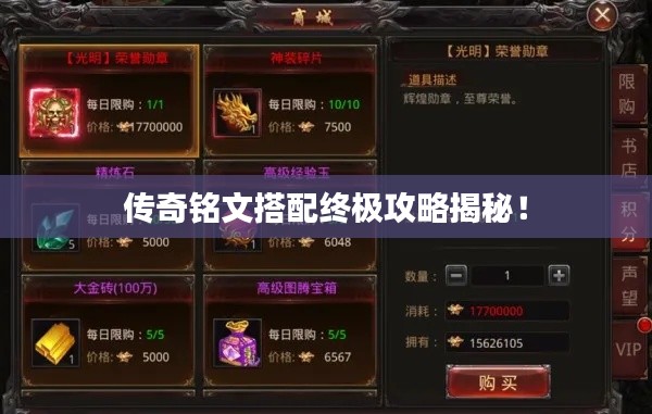 传奇铭文是游戏中的重要组成部分,能够为英雄提供额外的属性加成和技能效果,不同的英雄搭配不同的铭文,可以发挥出巨大的潜力,铭文的种类丰富,包括攻击、防御、法术、辅助等多种类型,玩家需要根据英雄的特点和玩法来选择合适的铭文。