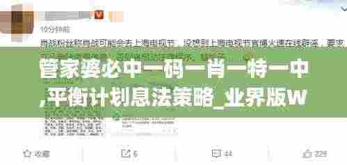除了“管家婆必中一码一肖一特一中”,还可以结合“平衡计划息法策略”来增强获胜的几率。平衡计划息法策略旨在确保在不同阶段的投注中达到一种收支平衡,以规避大额损失带来的风险。