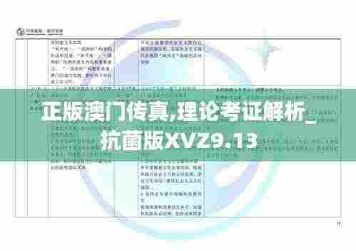 正版澳门传真,理论考证解析_抗菌版XVZ9.13