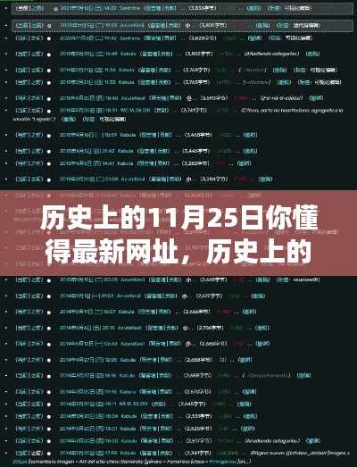 在数字化时代,信息的传播与获取变得日益重要,本文将聚焦于“历史上的11月25日”这一主题,对近期备受关注的“你懂得最新网址”进行全面评测,从产品特性、使用体验、竞品对比、优缺点分析以及目标用户群体等多个维度进行深入探讨。
