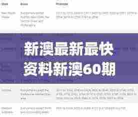 新澳最新最快资料概述