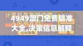 总之,“4949澳门免费精准宝典”不仅是博彩爱好者追求成功的工具,更是理解澳门博彩文化和市场的重要途径。通过精确的数据分析和信息获取,玩家不仅可以提升自己的博彩技巧,还能更好地享受博彩带来的乐趣。