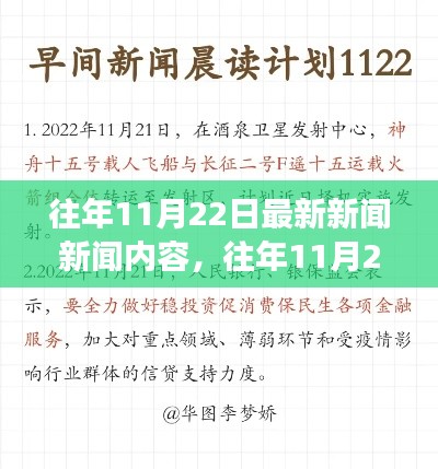 随着季节的转换,每年的11月22日总是新闻关注的焦点,这一天,国内外的时事动态、科技发展、社会进步等各个领域都会涌现出新的新闻内容,本文将带您回顾往年的11月22日,那些令人瞩目的最新新闻,一起聚焦时事热点。