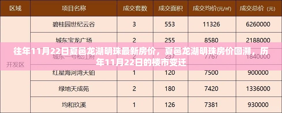 在繁忙的都市生活中,房价一直是人们关注的焦点之一,夏邑龙湖明珠作为当地标志性的地产项目,其房价走势更是牵动着无数人的心弦,本文旨在回顾历年11月22日夏邑龙湖明珠的房价动态,探寻其背后的故事,以及这一项目在特定领域或时代中的地位和影响。