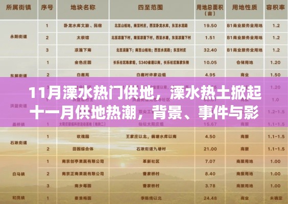 十一月,溧水这片繁荣的土地再次成为众人瞩目的焦点,在这片历史悠久的土地上,新一轮的供地热潮涌动,引发了广泛关注,本文将回顾溧水热门供地的背景、重要事件、影响及其在特定领域或时代中的地位。