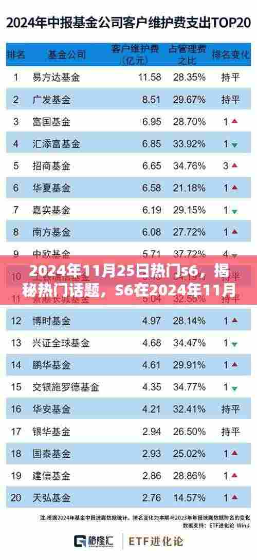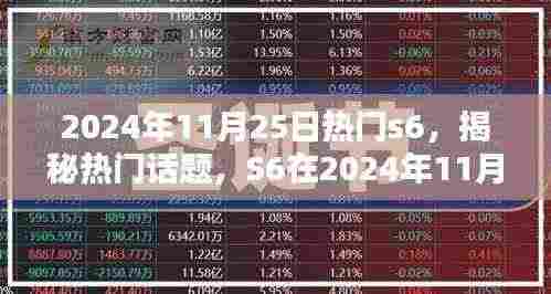 随着科技的飞速发展,人们对于电子产品的关注度日益提升,作为科技前沿的代表,S系列的产品总是备受瞩目,本文将聚焦于即将到来的2024年11月25日,探讨届时S6的热门话题及其独特魅力,我们将重点关注要点一:技术革新;要点二:用户体验;要点三:市场趋势,以揭示S6如何在这一日期展现出崭新的面貌。