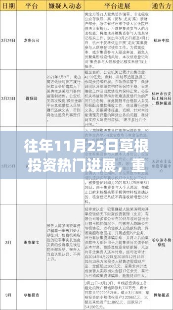 在金融市场的大潮中,草根投资力量不容忽视,他们虽然起步于基层,但凭借敏锐的市场洞察力和独到的投资策略,逐渐在投资领域崭露头角,每年的11月25日,都有一系列重要的草根投资进展值得我们关注,这些进展不仅推动了行业的发展,也给广大投资者带来了宝贵的启示。