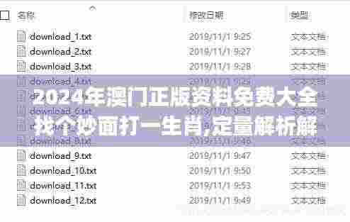 澳门正版资料免费大全是一个备受关注的话题,尤其是在2024年即将到来之际。对于很多人来说,生肖不仅仅是一个年份的代称,更是家族文化、传统习俗和生肖运势的重要象征。每个生肖都有其独特的性格特征与运势,这也使得生肖问题在社会生活中占据了重要的位置。在本篇文章中,我们将探讨2024年澳门正版资料免费大全的相关内容,并通过定量解析解释法来阐述生肖与运势之间的关系。